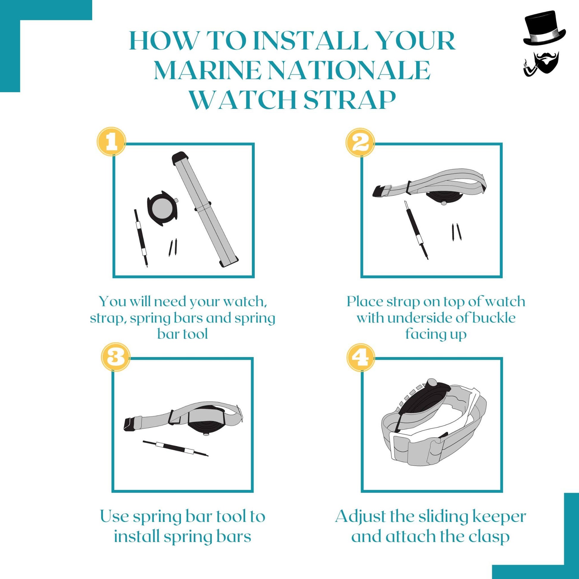 The Marine Nationale strap heralds from the 1960s/1970s when the French Naval arm of the same name sought a reliable way to hold their watch onto the wrist.